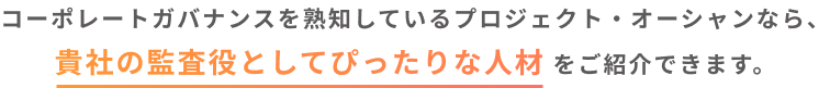 就任後、常勤監査役としてスムーズに実務遂行できるところまでフォローいたします。